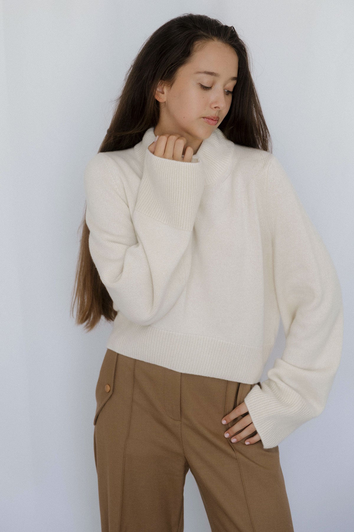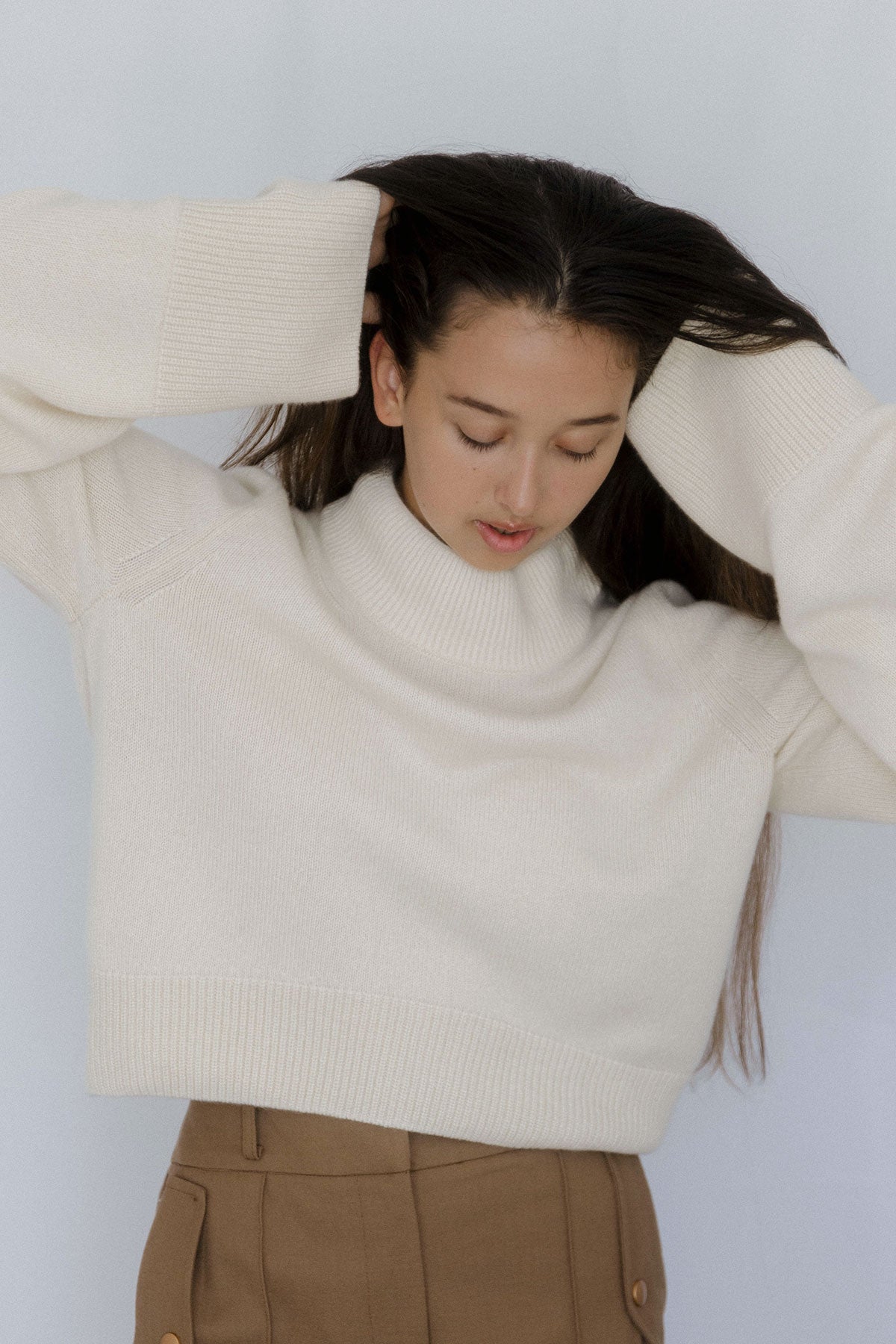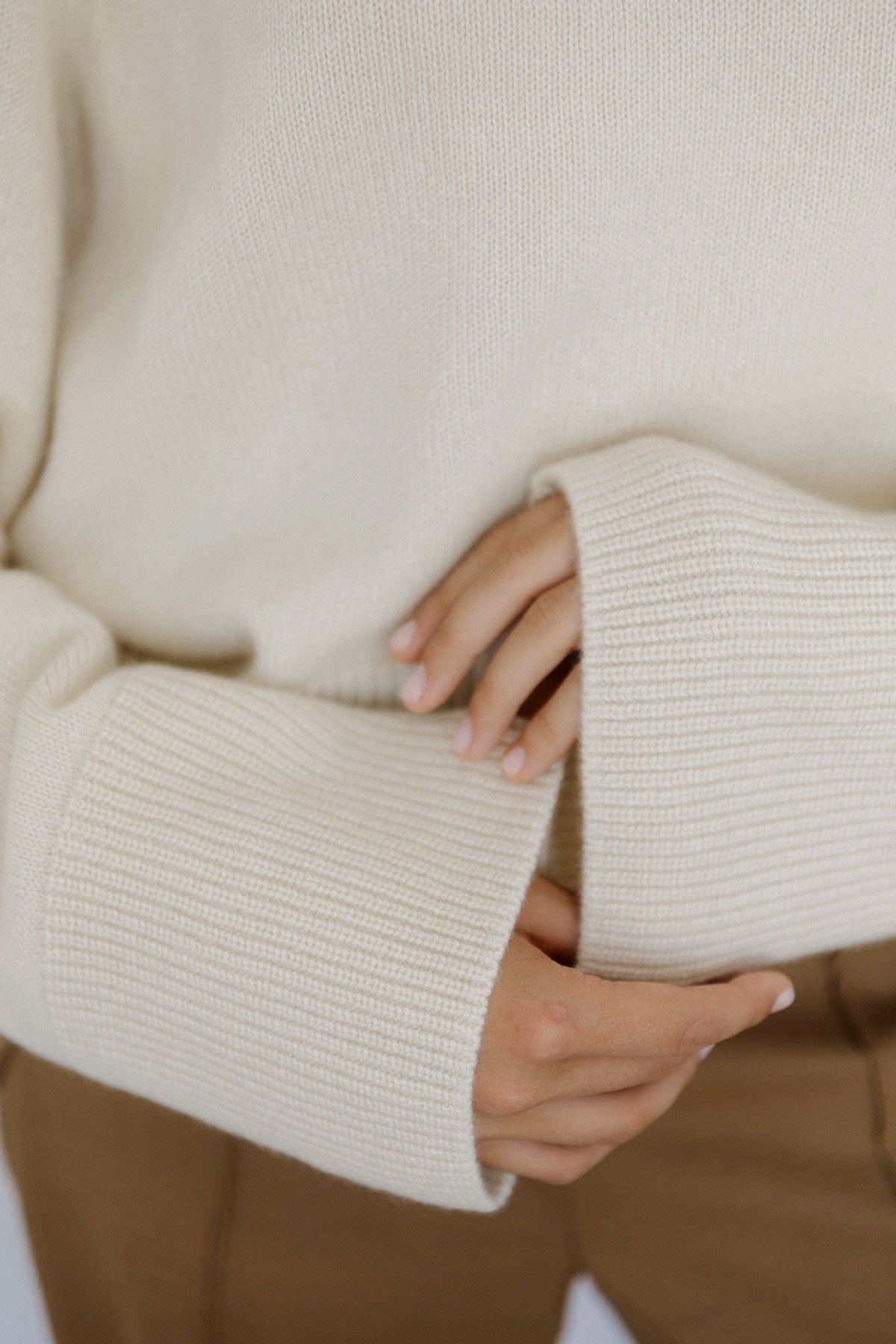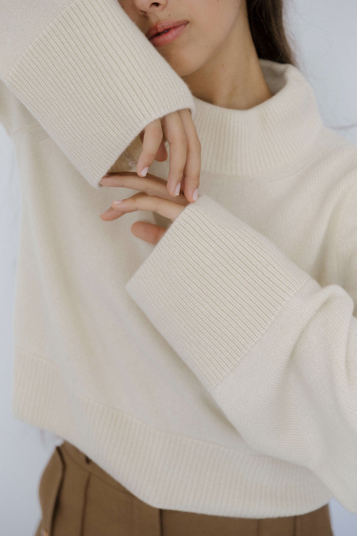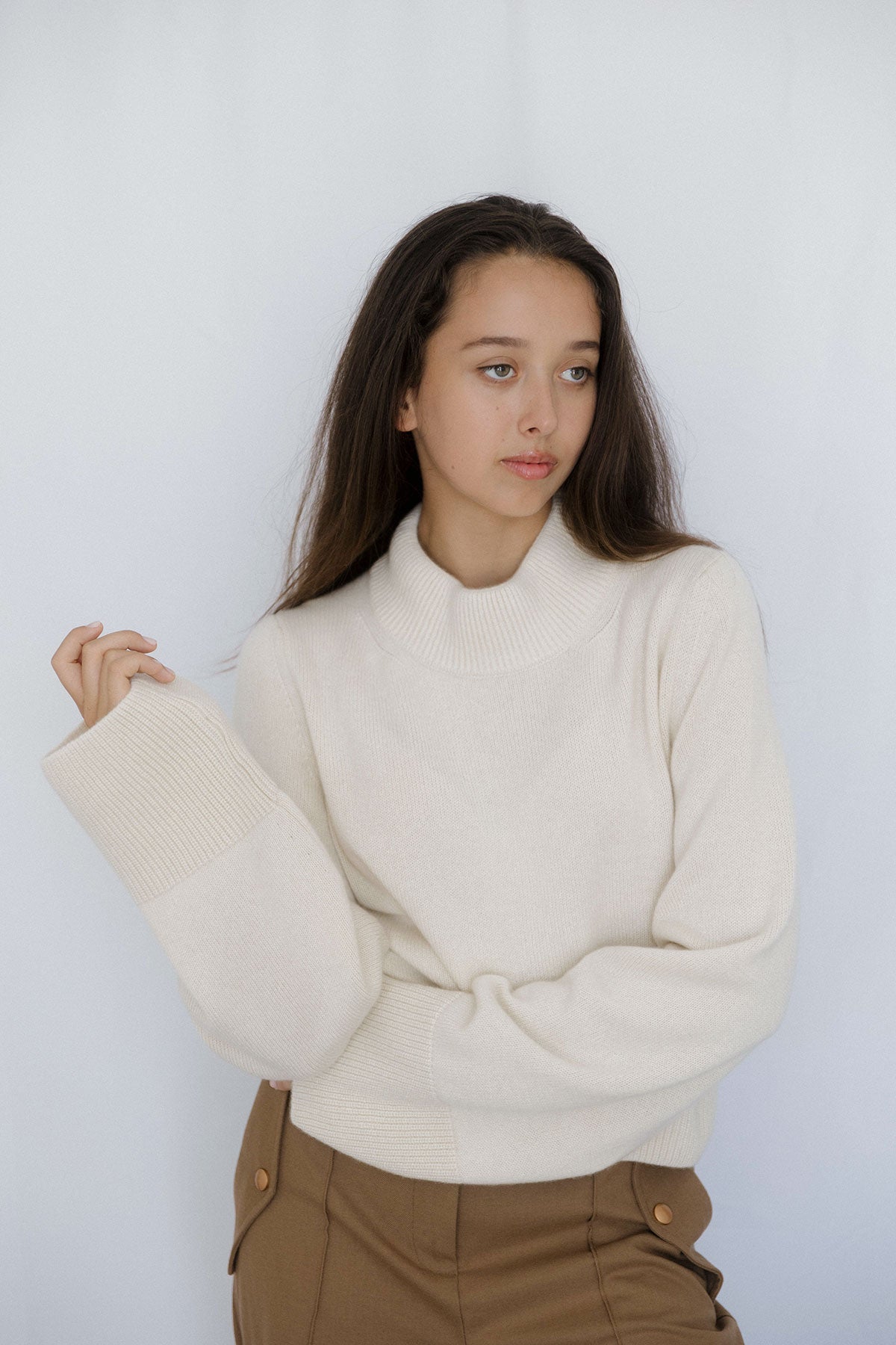 Wide Sleeves Ecru 100% Baby Cashmere Sweater